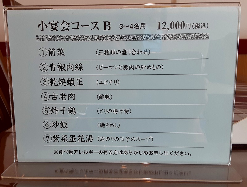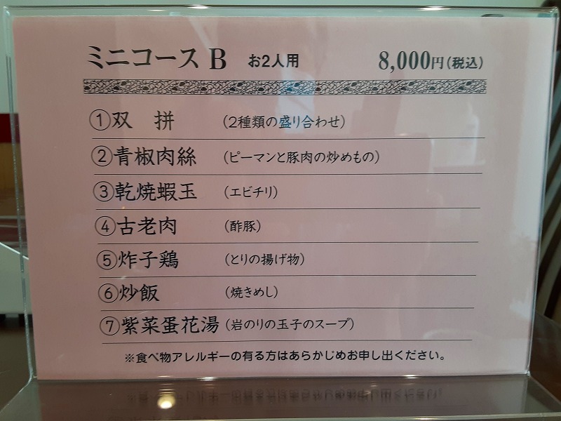 まずはお2人で8,000円のミニコースB(お2人用)と3~4名で12,000円の小宴会コースB(3~4名用)です。