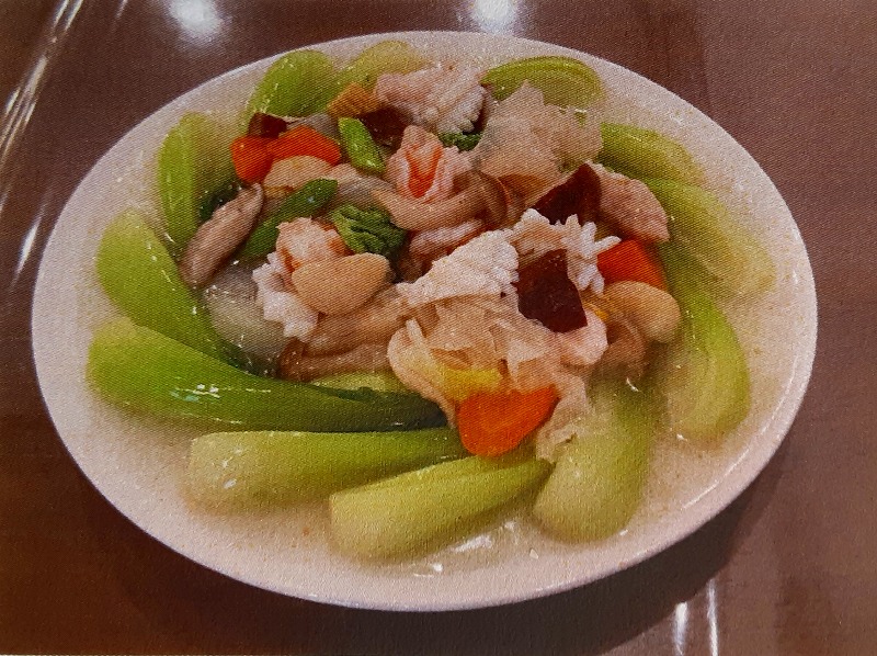 まずは、5,000円コースの青挭什錦(エビ・イカ・肉・キノコ野菜の煮物)です。