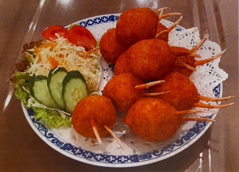鮮度の良いエビと食用の各種球根類のすり身揚げです。