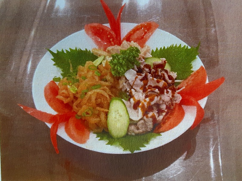 クラゲはコリコリで歯ごたえが楽しみです。また、豚肉千切りゴマソース掛けと豚肉のニンニクソース掛けも楽しみの前菜です。